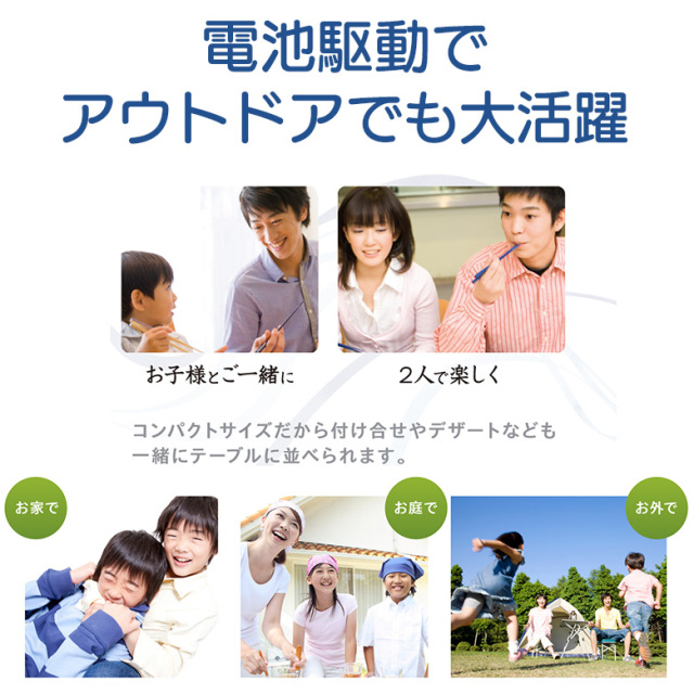 ・電池駆動でコンセントのない場所でも楽しめる