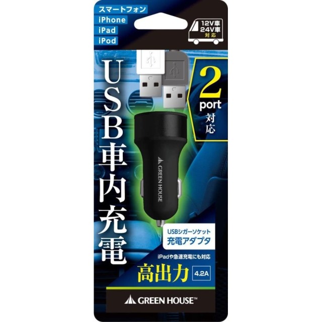 | コネクタ形状 | USB TypeA(メス)×2ポート - シガープラグ |