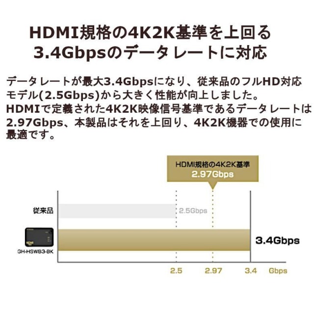 3つのHDMI機器を切り替えられる!4K2K対応 3ポートコンパクトHDMIセレクタ