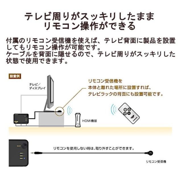離れたところからも付属リモコンでラクラク切り替え