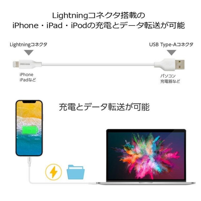 Lightningコネクタ搭載のiPhone・iPad・iPodの充電とデータ転送が可能
