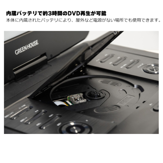 内蔵バッテリで約3時間のDVD再生が可能