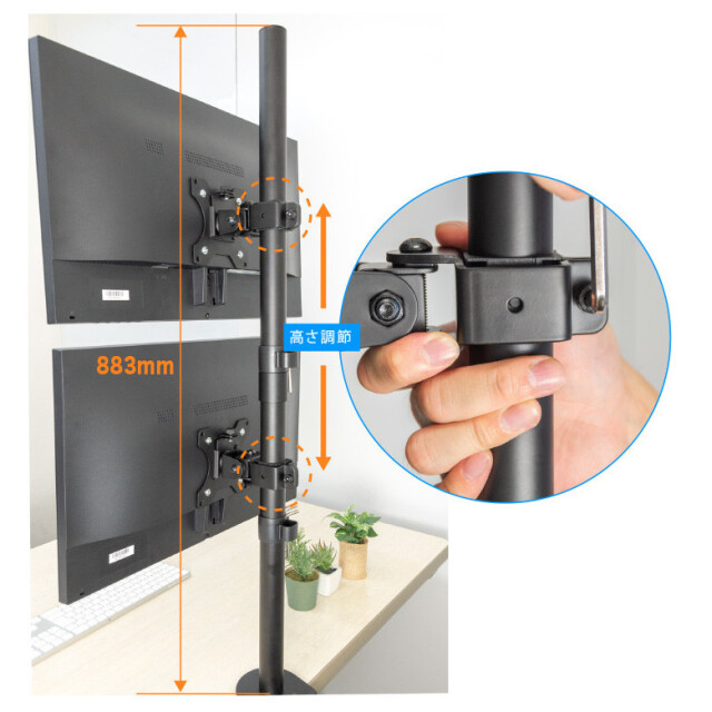 縦に2画面を設置できるので、横幅は1画面分で済み、狭い空間にも広い作業画面を設置できます。株式チャートを常時表示しておく、複数のエクセルファイルやブラウザ画面を表示するなど、広い作業画面を確保したいユーザーに最適です。ご家庭での使用の他に、2画面を別々の方向に向け商品PVを流すなど、店舗での使用にも向いています。