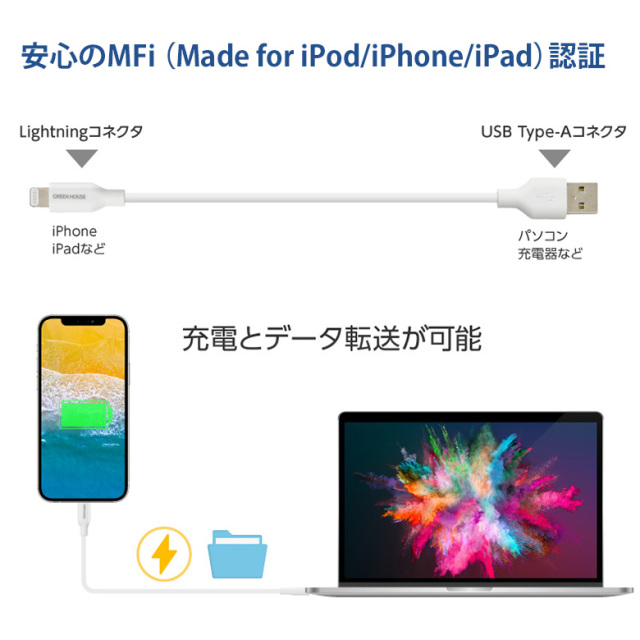 Lightningコネクタ搭載のiPhone・iPad・iPodの充電とデータ転送が可能