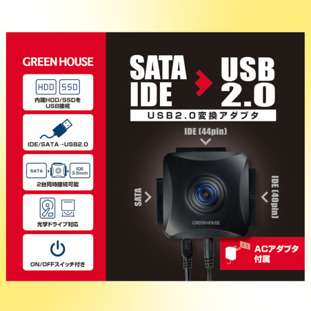 TOP ■PC周辺機器HDD/SSD ストレージ関連 テレワーク特集 SATA/IDE-USB2.0変換アダプタ GH-USHD-IDESB 価格: ¥1,580 (税込) 販売期間: 数量: 個 在庫: × 在庫 × 返品についての詳細はこちら _ SATA/IDE-USB2.0変換アダプタ GH-USHD-IDESB 価格: ¥1,580 (税込) 販売期間: 数量: 個 在庫: × 在庫 × 返品についての詳細はこちら _