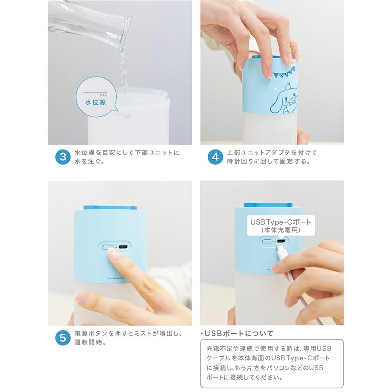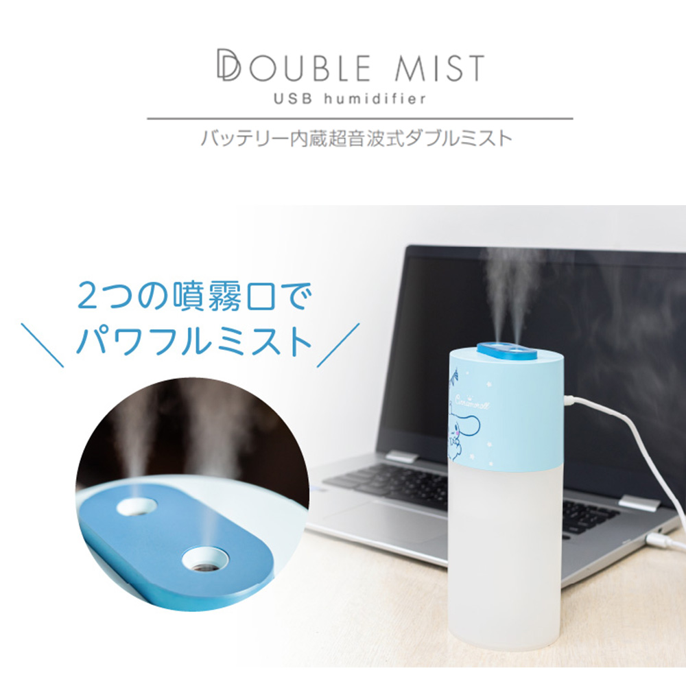 小型ながら2つの噴霧口でパワフルミスト、静音設計でアロマウォーターにも対応しています。