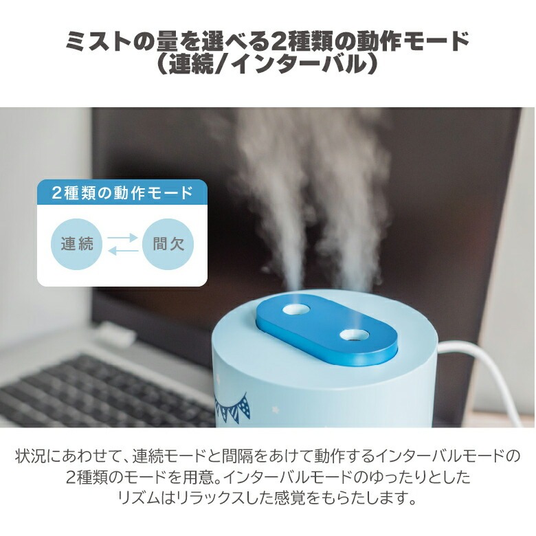 ・ミストの量を選べる2種類の動作モード(連続/インターバル)