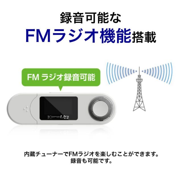 ・録音可能なFMラジオ機能搭載