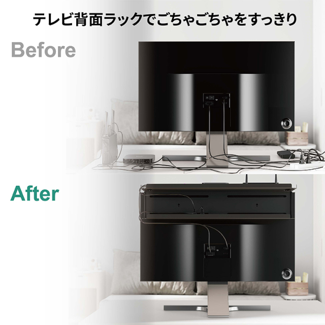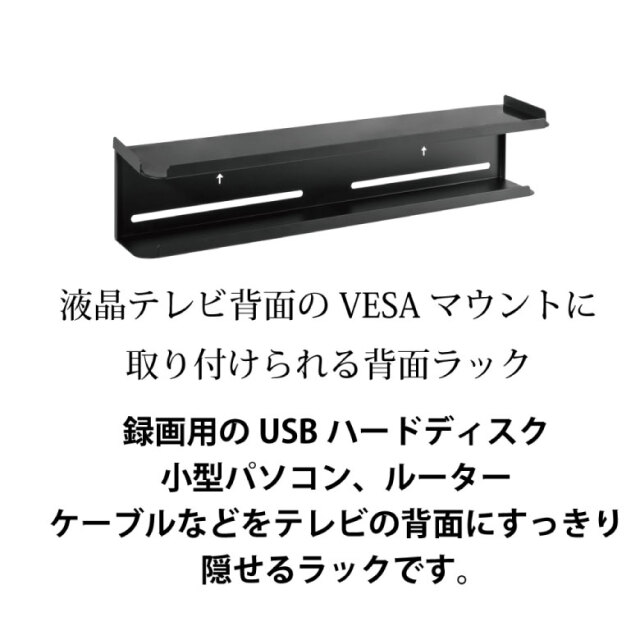 液晶テレビ背面のVESAマウントに取り付けられる背面ラック