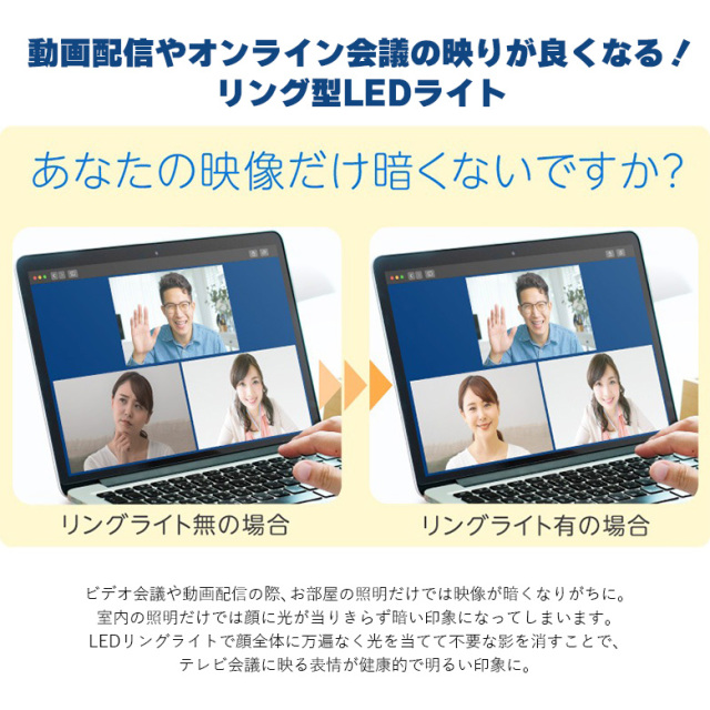 動画配信やオンライン会議の映りが良くなる!リング型LEDライト