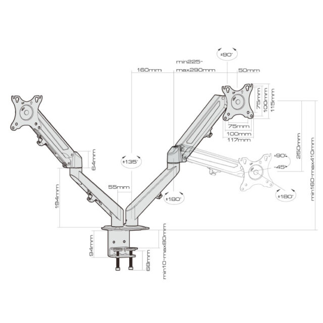 軽い力で自在に動く 2画面 ガススプリング式液晶ディスプレイ用アーム