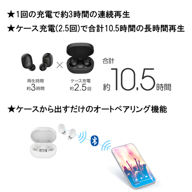 ・ケース充電(約2.5回)で合計10.5時間の長時間再生