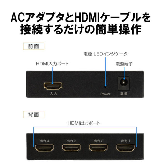 1つのHDMI機器の画像を4つのテレビに映しだすHDMI分配器