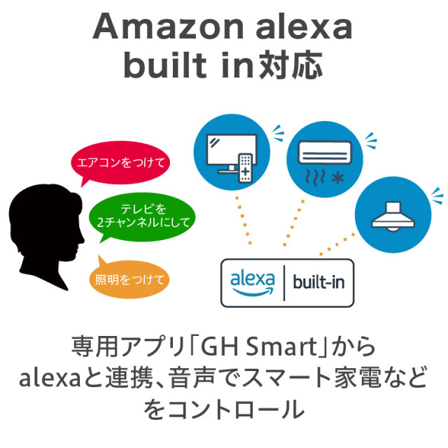 ・Amazon alexa built in対応、音声でスマート家電などをコントロール