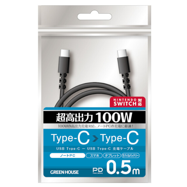 充電ケーブル USB Type-CtoC PD(急速充電)対応 Nintendo Switch動作確認済 0.5m GH-UCCCA05-BK
