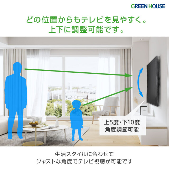 ・どの位置からもテレビを見やすく上下に調整可能