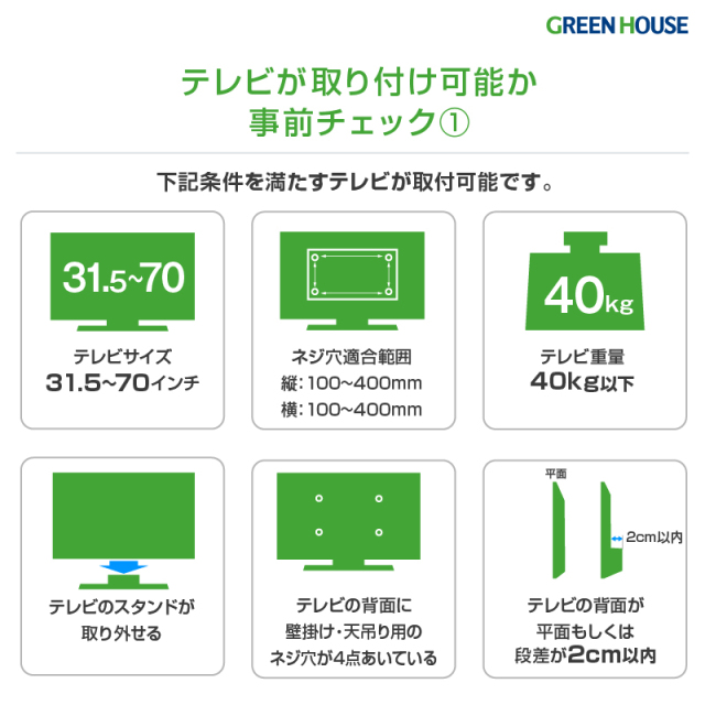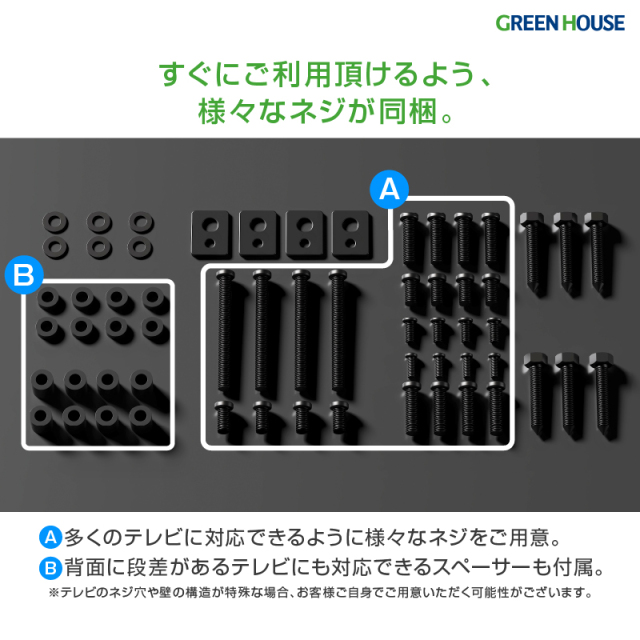 ・VESA100x100~VESA400x400まで、一般的なテレビに対応可能です