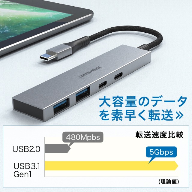 USB3.1 Gen1対応 USB Type-C接続 4ポートUSBハブ