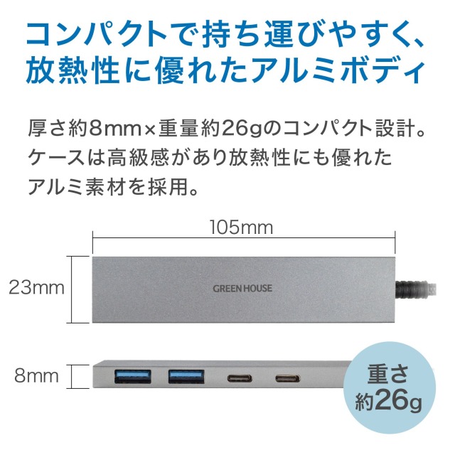 ・コンパクトで持ち運びやすく、放熱性に優れたアルミボディ