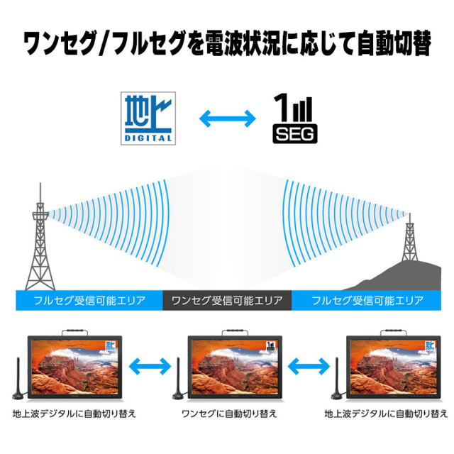 ワンセグ/フルセグを電波状況に応じて自動切替