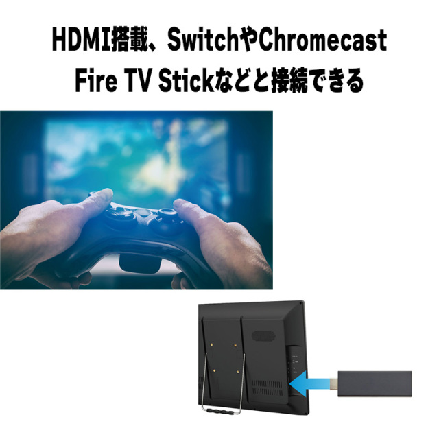 HDMI搭載、SwitchやChromecast、Fire TV Stickなどと接続できる