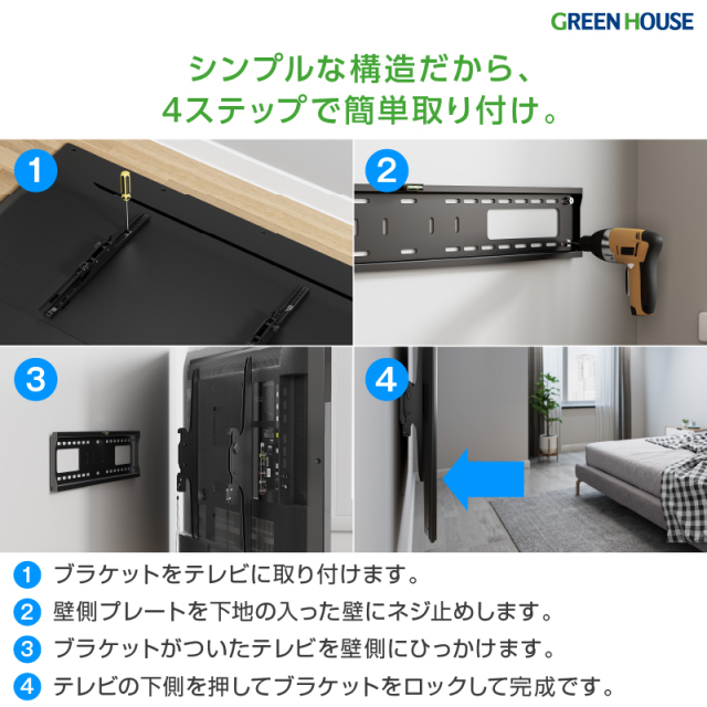 ※テレビのネジ穴や壁の構造が特殊な場合、お客様自身でご用意いただく可能性があります。