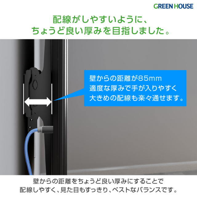 大きいテレビを取り付けると壁掛け金具まで手が届かないなどで金具のロック操作が難しくなりますが、 本製品はストラップにより金具のロック/アンロックが可能なので、ワンタッチで確実な操作が可能です。