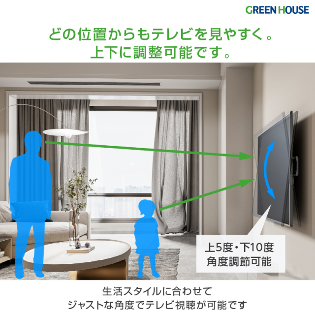 ●どの位置からもテレビを見やすく、上下に調整可能です