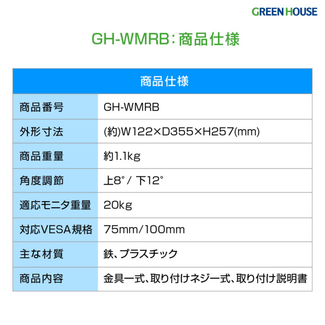| 対応VESA規格 | 75×75mm/100×100mm |