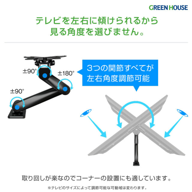 ・テレビを左右±90°傾けられるから見る角度を選びません