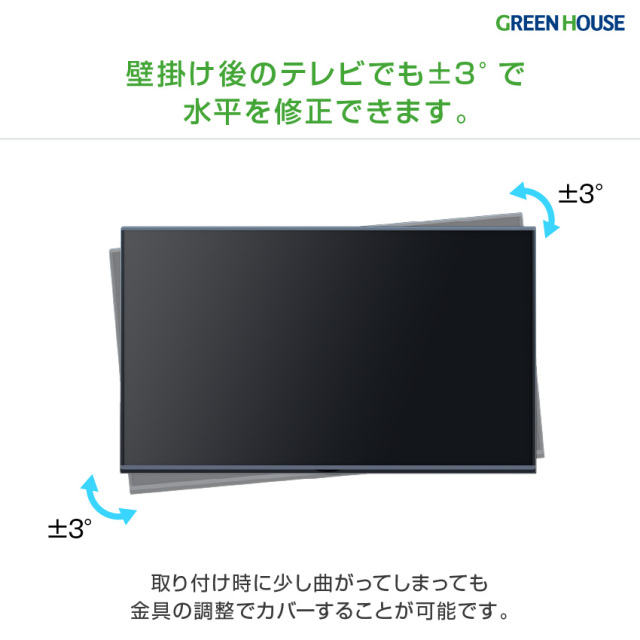 ・壁掛け後のテレビでも±3°で水平を修正できます