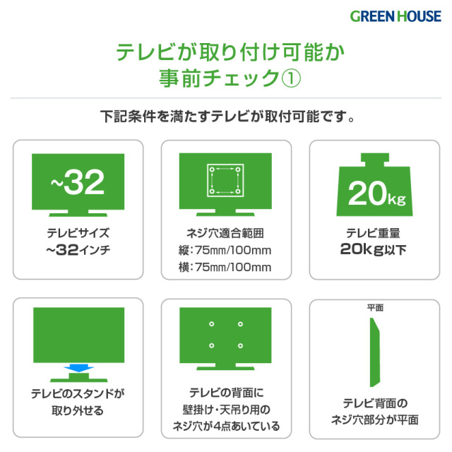 ・耐荷重20kg、~32型まで対応の小型、中型テレビ向け
