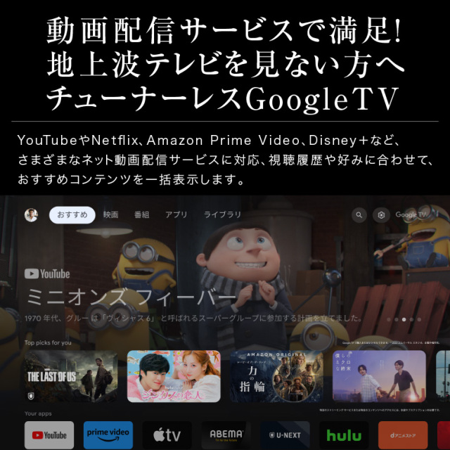 ネット動画視聴に特化したチューナーレステレビ
