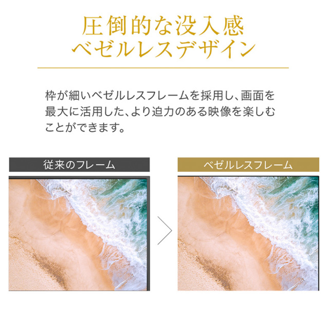 ・ベゼルレスフレームの採用
