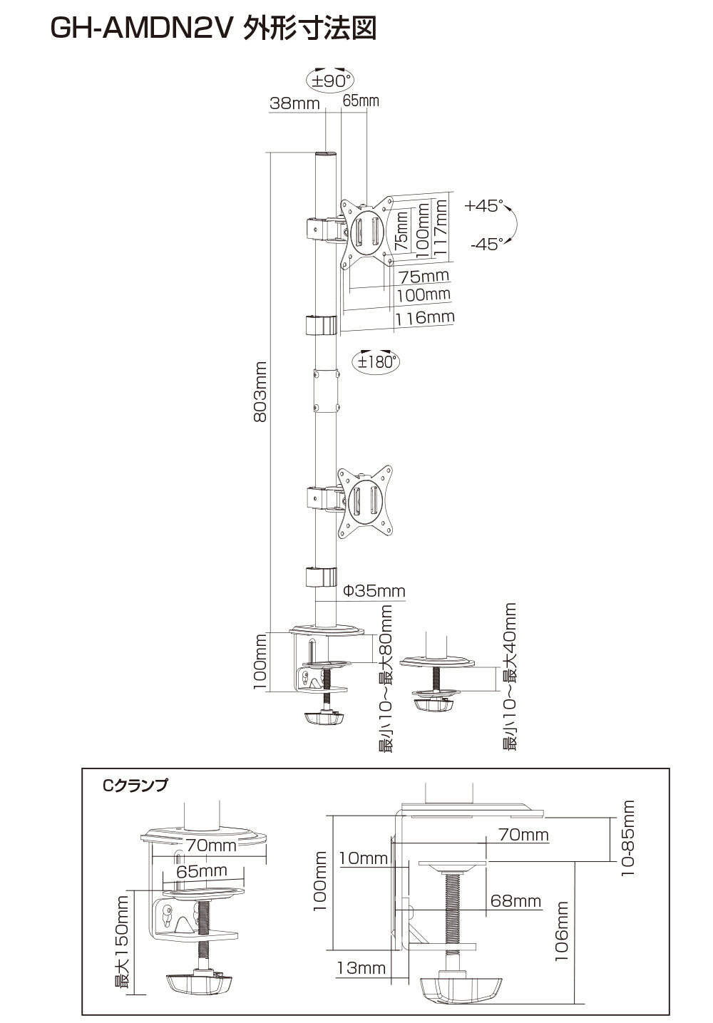 | 対応規格 | VESAマウントインターフェース規格(FPMPMI)100mm/75mm | |