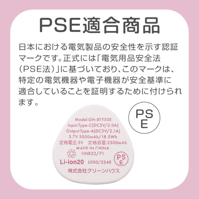 日本の電気用品安全法(PSE)の技術基準に適合した安全性の高い製品です。
