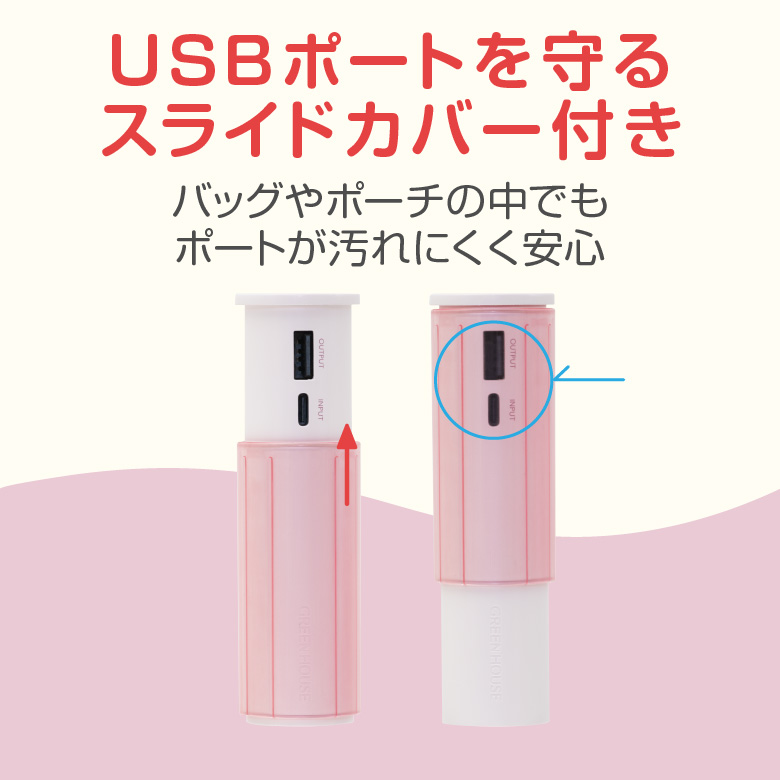 USBポートに被せるスライドカバー付きだから、カバンの中のゴミやホコリ、金属片などからポートを守ります。