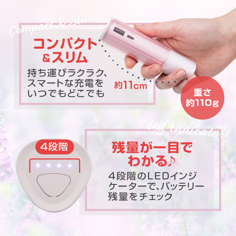 4段階のLEDインジケータでバッテリー残量がパッと分かる。