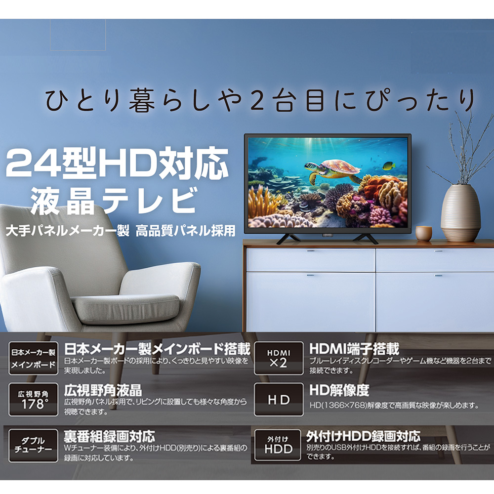 HD(1366×768)解像度で高画質な映像が楽しめます。