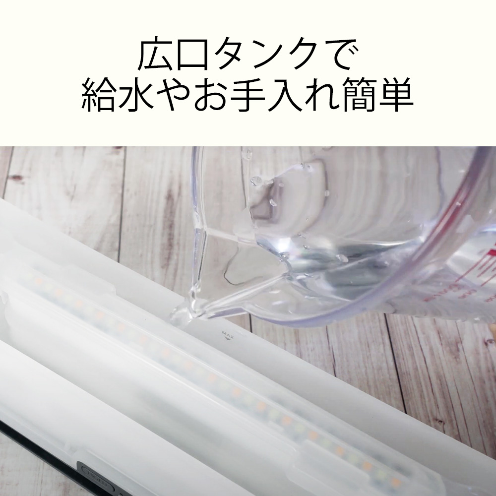 | 連続加湿時間 | 約7~8時間(連続、LEDライトOFF) 約15~16時間(インターバル、LEDライトOFF) |