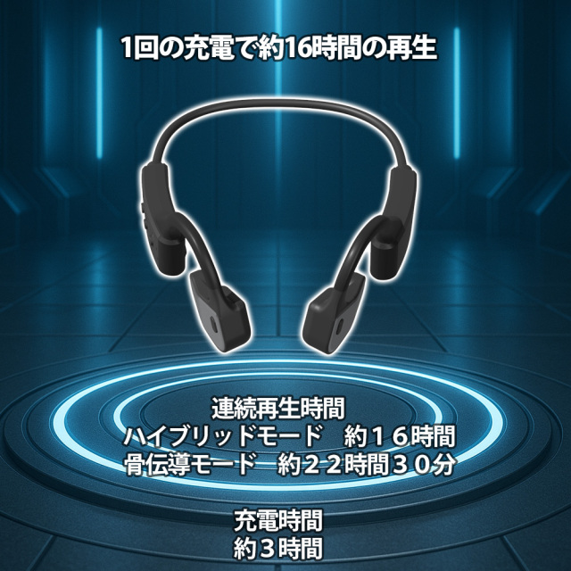 | 再生時間 | ハイブリッドモード約16時間 骨伝導モード約22時間30分 |