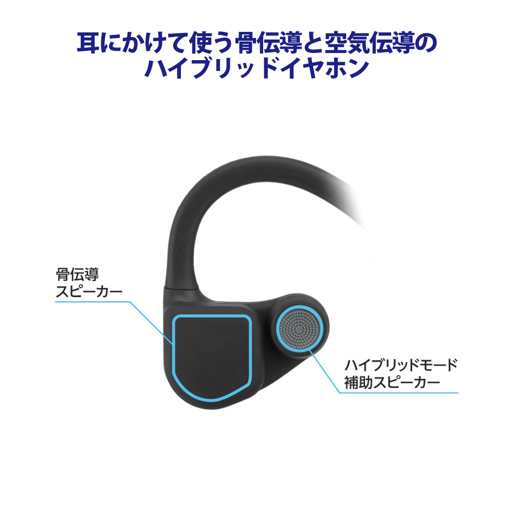 ・耳にかけて使う骨伝導と空気伝導のハイブリッドイヤホン