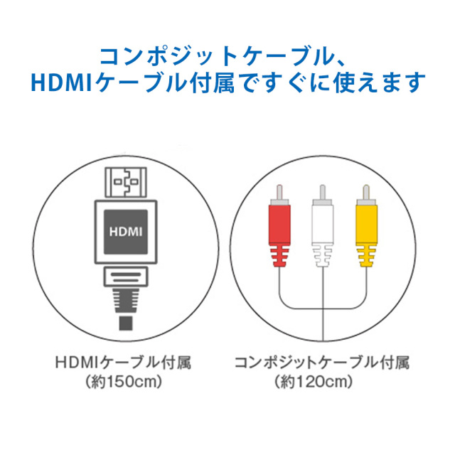 ・すぐに接続できるHDMIケーブル、コンポジットケーブル付属