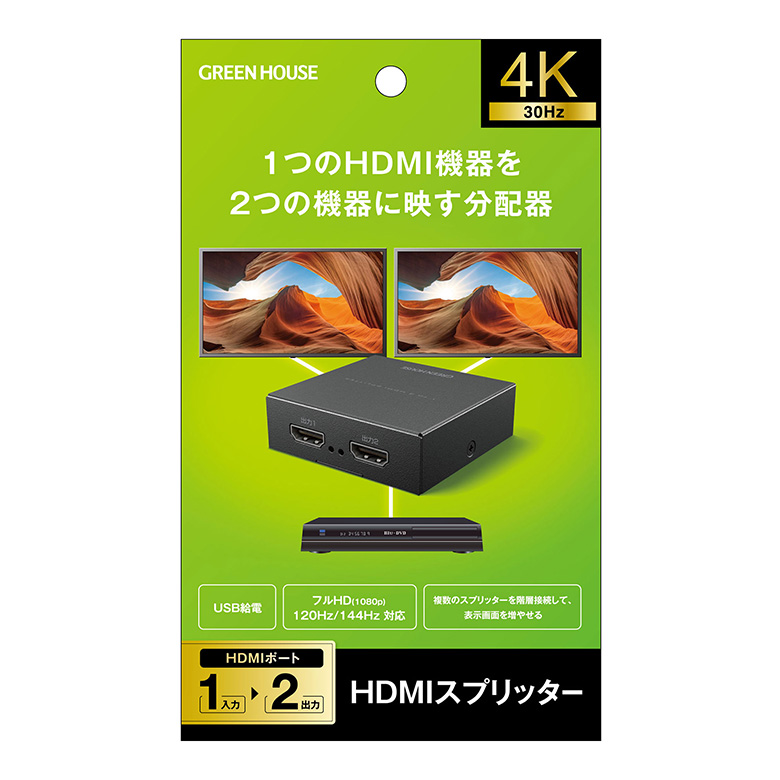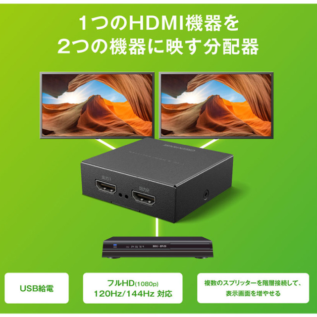 1つのHDMI機器の画像を2つのテレビに映しだすHDMI分配器