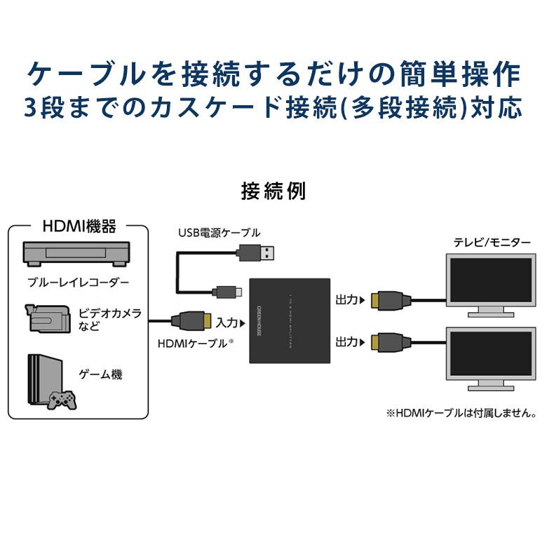 | カスケード接続 | 3段まで(同一機種かつHDMIケーブル短尺の場合のみ保証) |