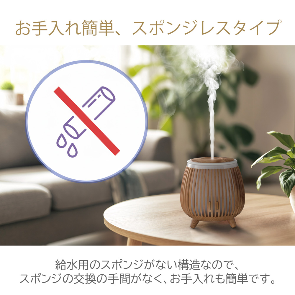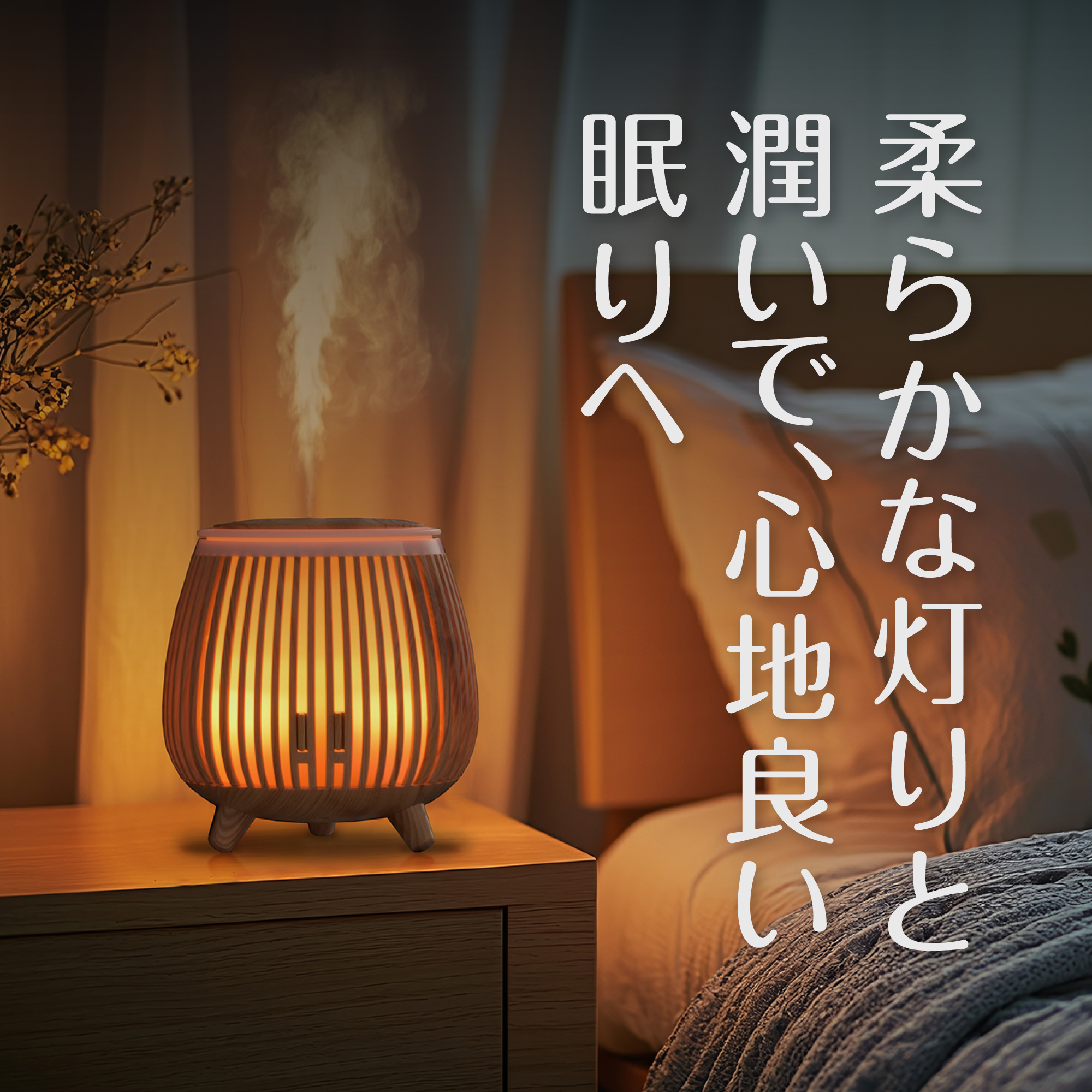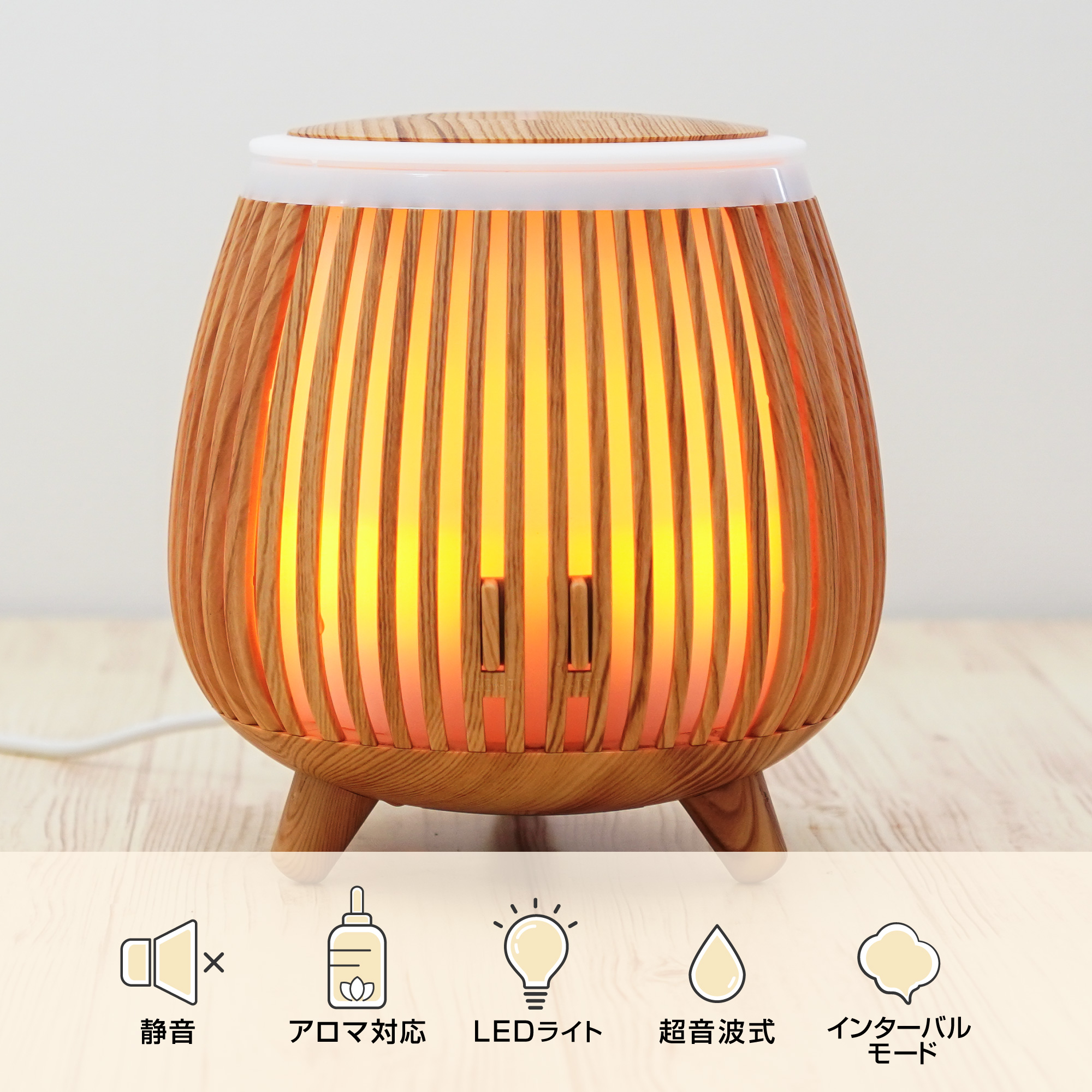 インテリアに映える木目調で、エッセンシャルオイルを入れてアロマディフューザーとしても使用できます。