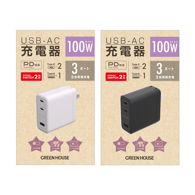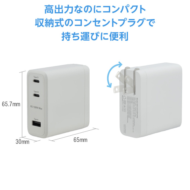 最大出力100Wの急速充電に対応したコンパクトなAC充電器
