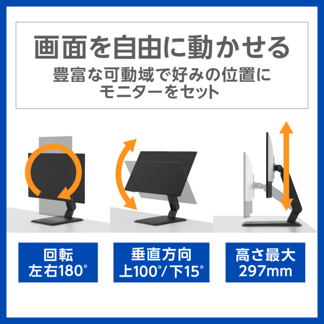 ・アームの移動もモニターの首振りも上下方向にしか動かないので操作時のストレス軽減