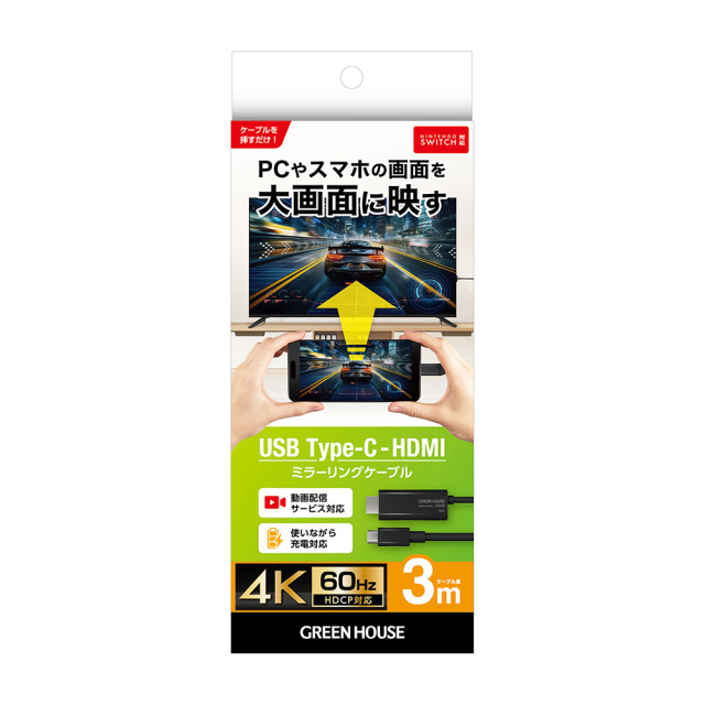 | コネクタ形状 | (入力側) USB Type-C オス (出力側) HDMIプラグ(タイプA-19ピン) オス |