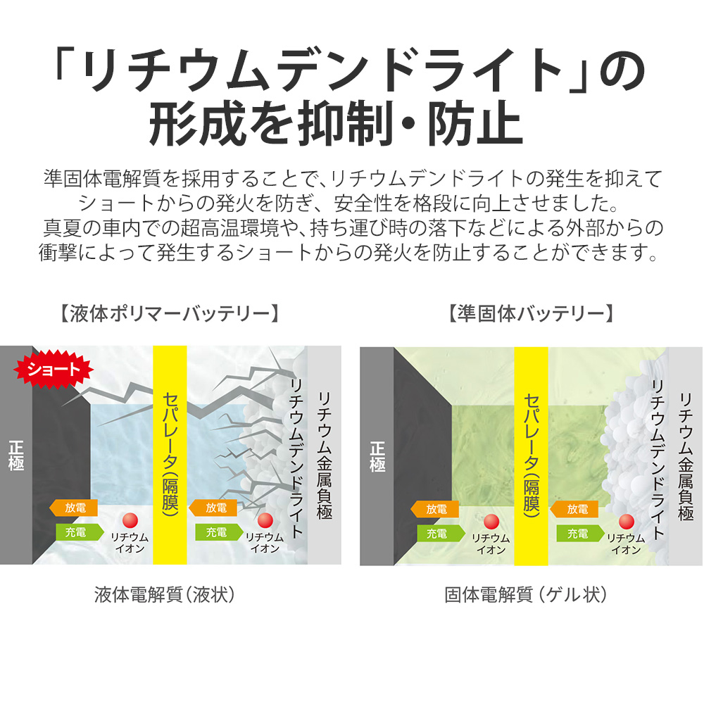 次世代型のゲル状の準固体電池のモバイルバッテリー